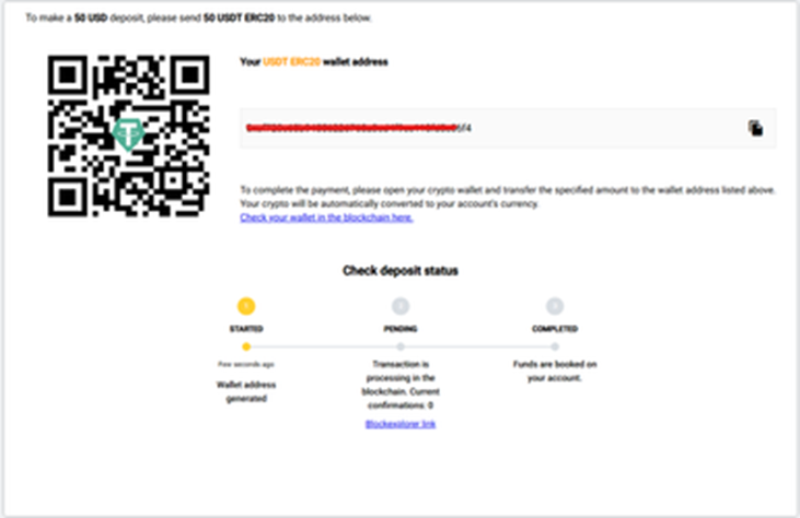 6.新しいサイトに遷移します。表示されるウォレットアドレス宛に、ご自身のウォレットから資金を送金してください。
